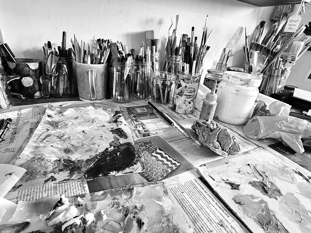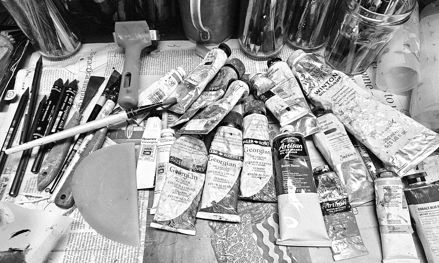 Back home in my studio I work mainly in oil and cold wax to convey this feeling by building up layers and details to capture the beauty and joy of the rural and coastal landscapes.